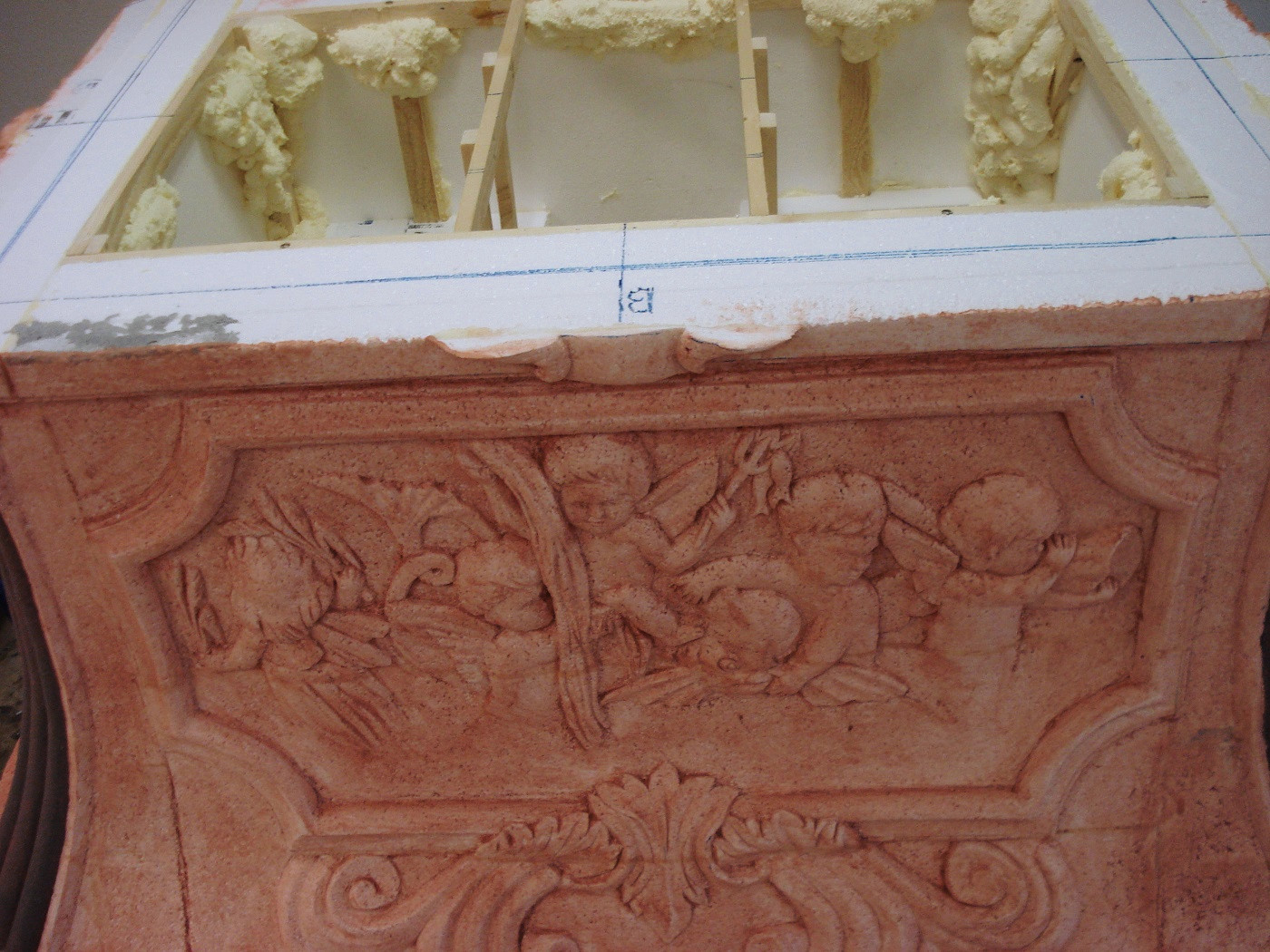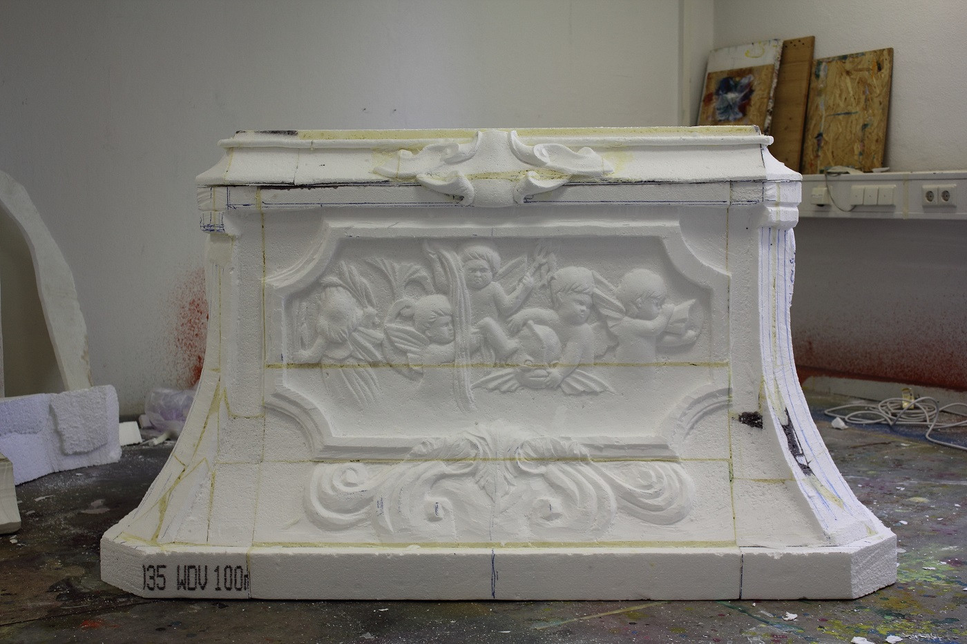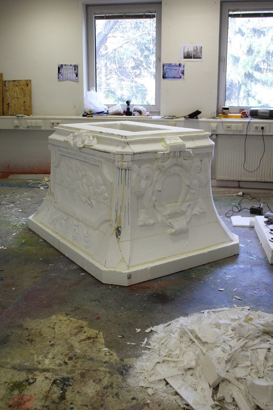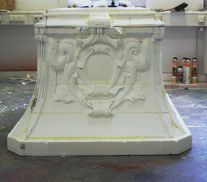 Material: Styropor, Holz, Spachtelmasse