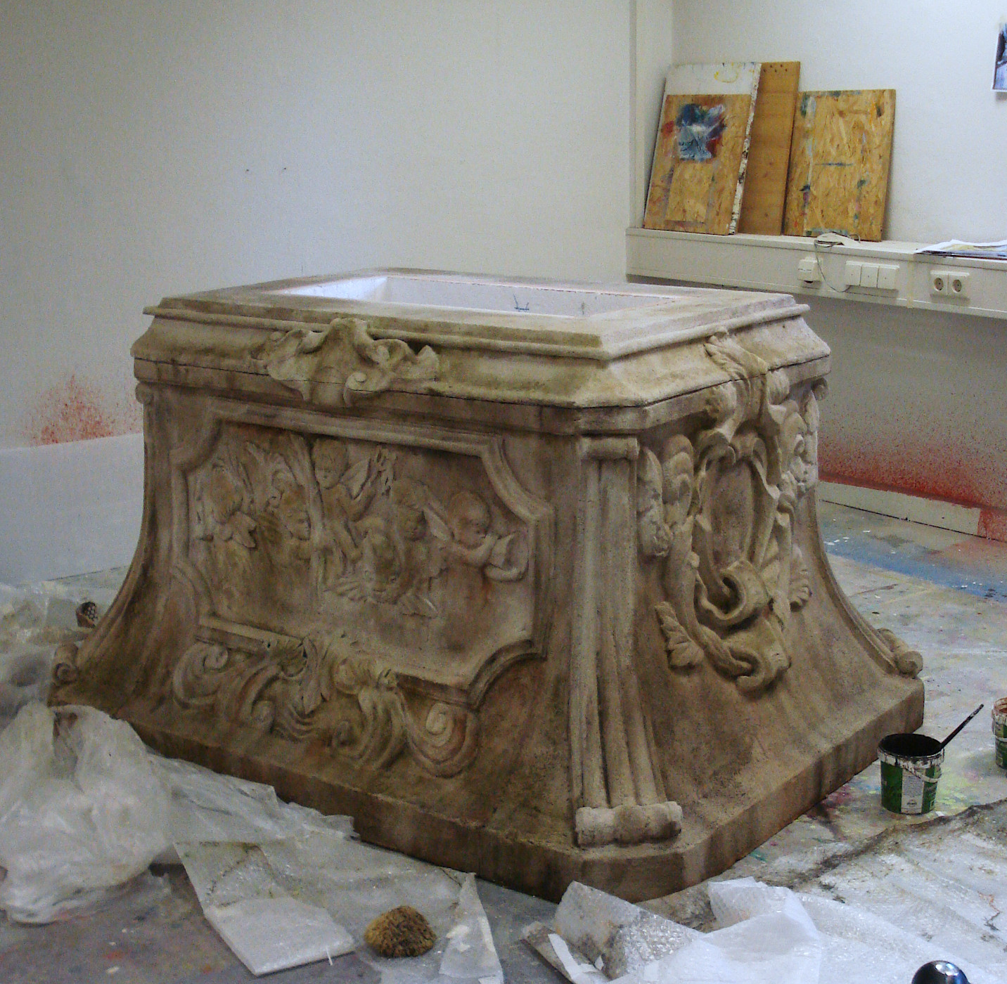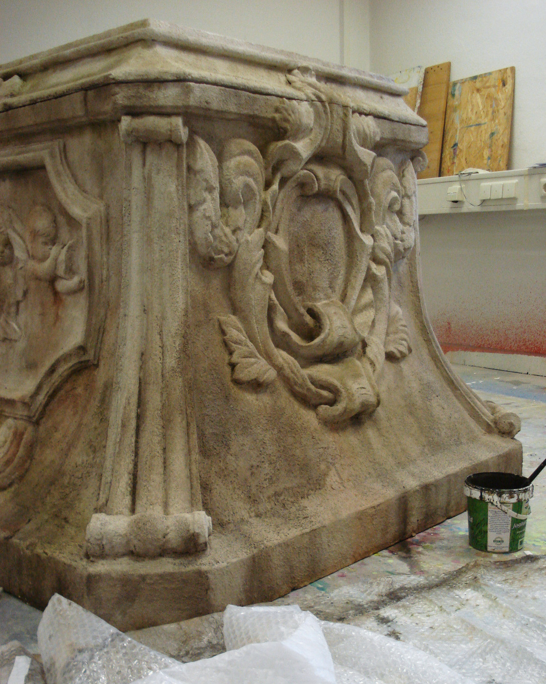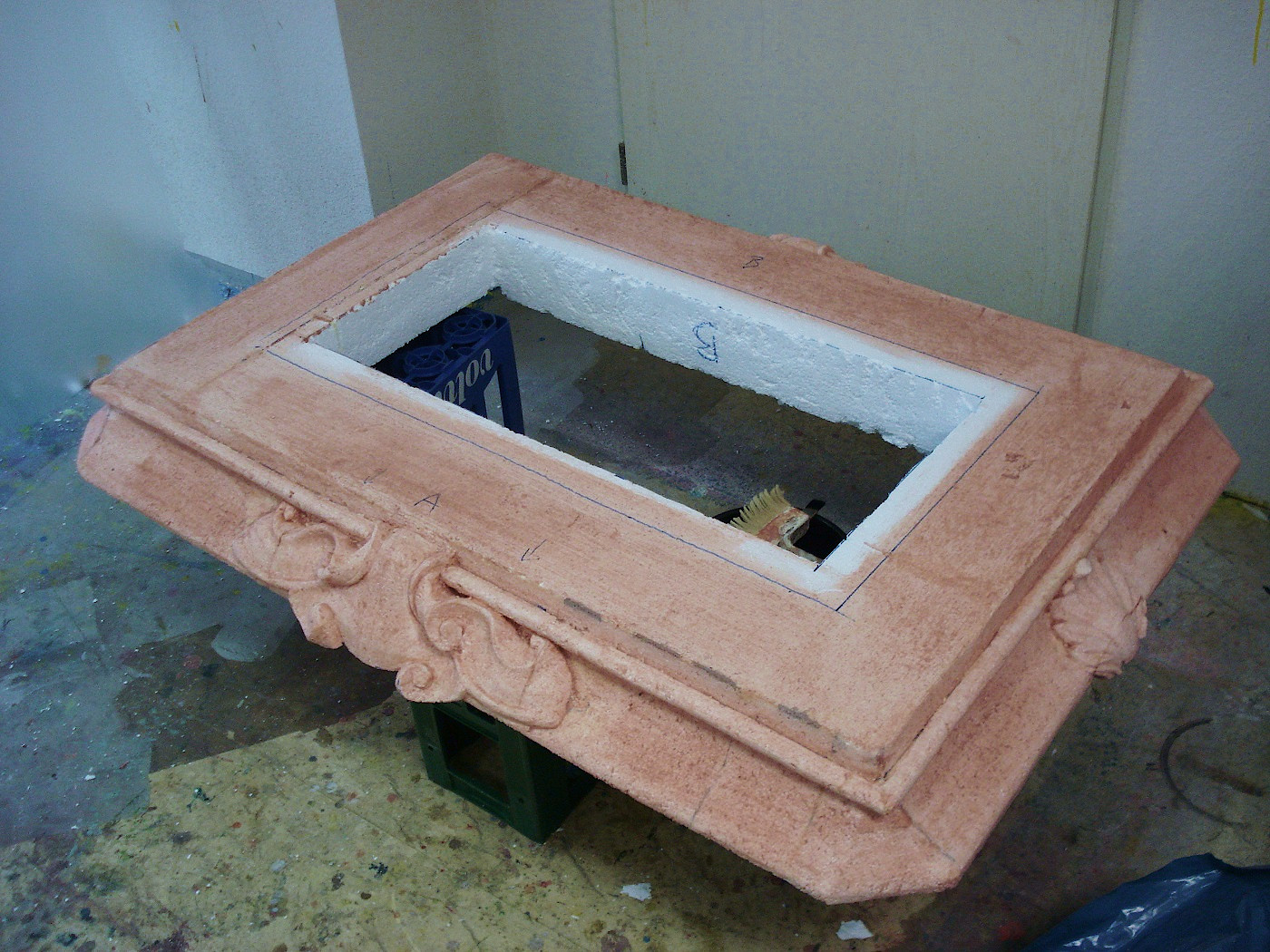 Material: Styropor, Holz, Spachtelmasse